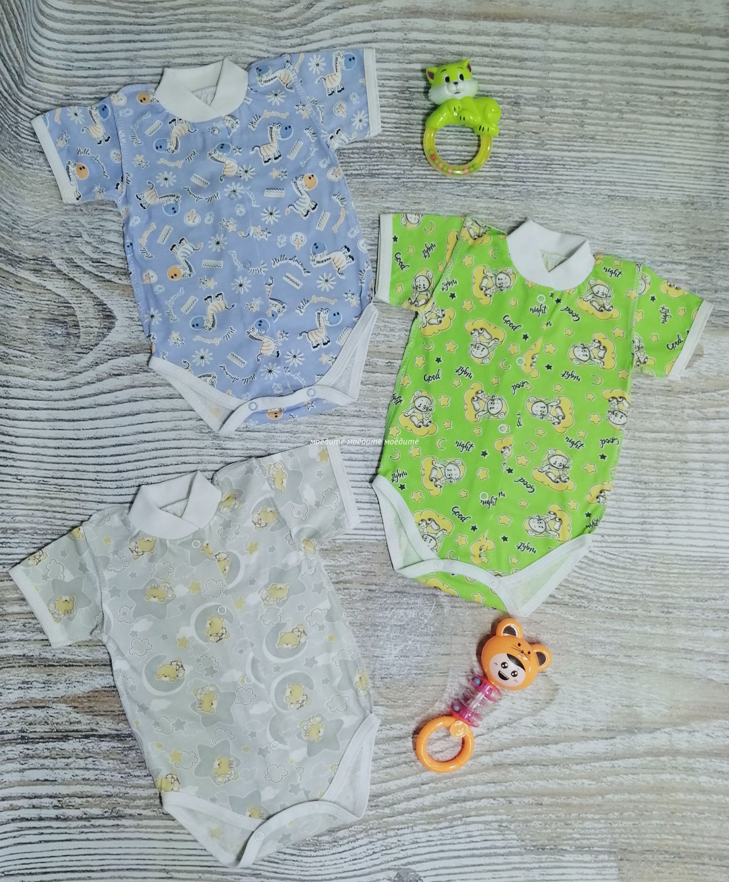 Боди с коротким рукавом, спереди и снизу на кнопочках. Швы выполнены наружу.