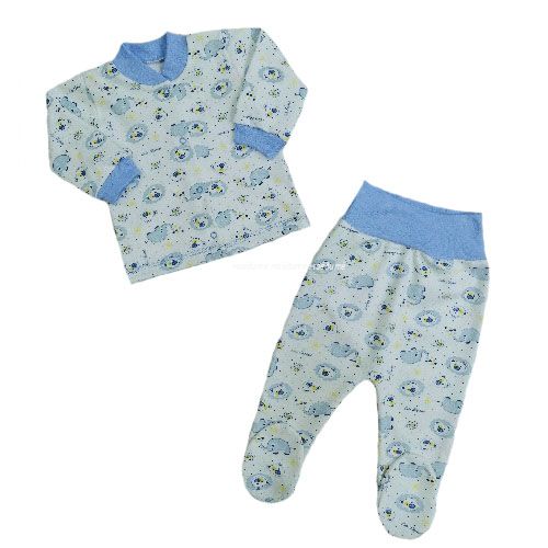 Комплект состоит из кофточки спереди на кнопочках и ползунков на еврорезинке.